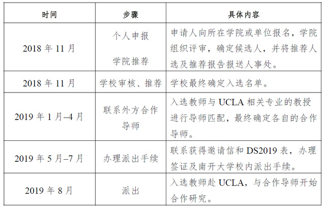 (1)申请人对照自身条件向所在学院或单位提出申请,并填写提交《南开大学—美国加州大学洛杉矶分校项目申报表》(见附件一)。