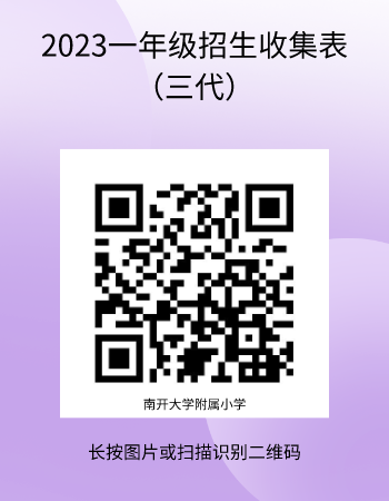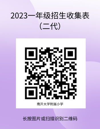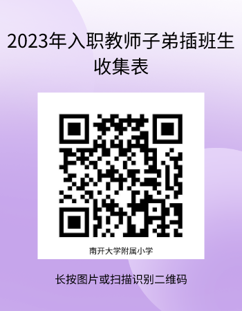 按照南开区教育局规定从即日起不再办理六年级学生的插班工作。因此附小仅能接收当年南开大学各院(系)引进人才教职工子弟(二代)一至五年级的学生,并为其办理插班手续。如有需要的家长,请您在8月18日前扫描下方二维码进行登记填写。