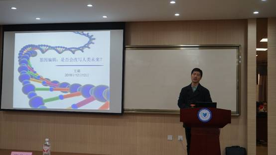 王福首先对“基因编辑”这一概念进行了详细介绍,着重介绍了基因编辑技术的原理以及目前应用最广泛的三大类基因编辑技术。然后从最近的热点话题"南方科技大学学者贺建奎进行基因编辑婴儿"事件入手,介绍了基因编辑涉及的伦理道德和潜在存在的风险。王福告诫同学们“科学的最后底线在于不该挑战人性”,科学技术必须要服务于人类的更好发展,鼓励同学们要将“先做人,再做事,最后做学问”的要求牢记心中,学真本领,做真学问,始终服务于祖国发展和人民需求,为国家的繁荣富强贡献自己的力量。