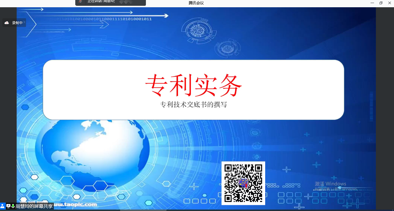 紧接着,周慧玲以专利制度为主要内容,详细讲解了专利的法律特征、专利制度的本质、专利权人的权利和义务、如何申请专利等一系列问题。随后,两位校友为同学们介绍了发明专利的分类、专利的申请、专利技术交底书的撰写方法及如何做专利的转化等知识。