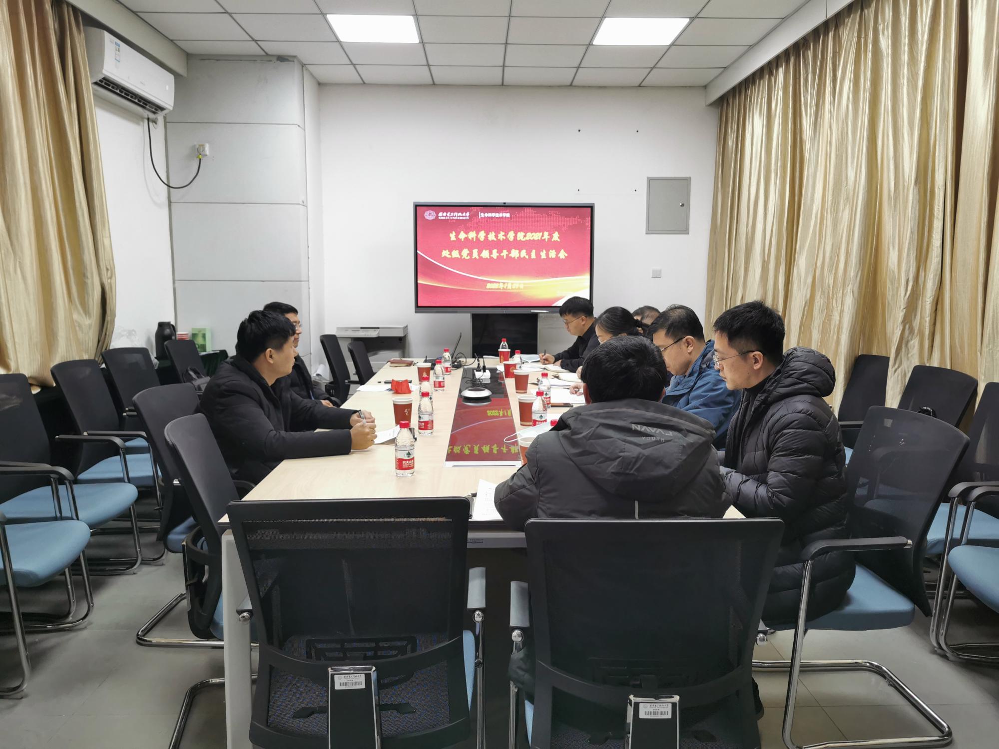1月29日下午,生命科学技术学院党委在南校区G楼410-1会议室召开2021年度处级党员领导干部民主生活会,学校第十三督导组组长高俊亮、组员孙寅林出席会议并做指导,学院领导班子全体成员参加会议,会议由学院党委书记王丽玲主持。