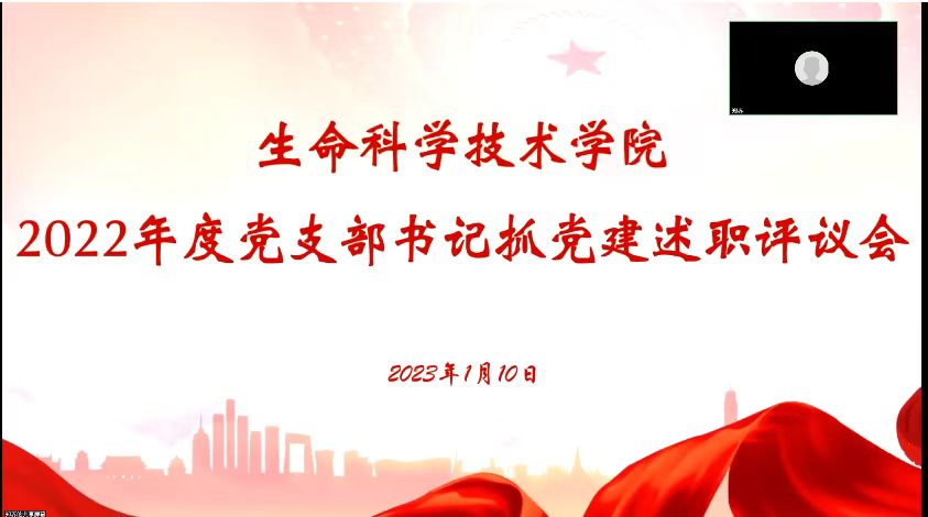 (通讯员:郑乔)为深入学习宣传贯彻党的二十大精神,落实新时代党的建设总要求,进一步落实管党治党政治责任,不断提升学院党建工作水平。1月10日,生命科学技术学院通过线上线下相结合的方式组织召开2022年度党支部书记抓党建述职评议会,以“述、问、评、测”的方式对学院各党支部书记抓党建工作情况进行测评。